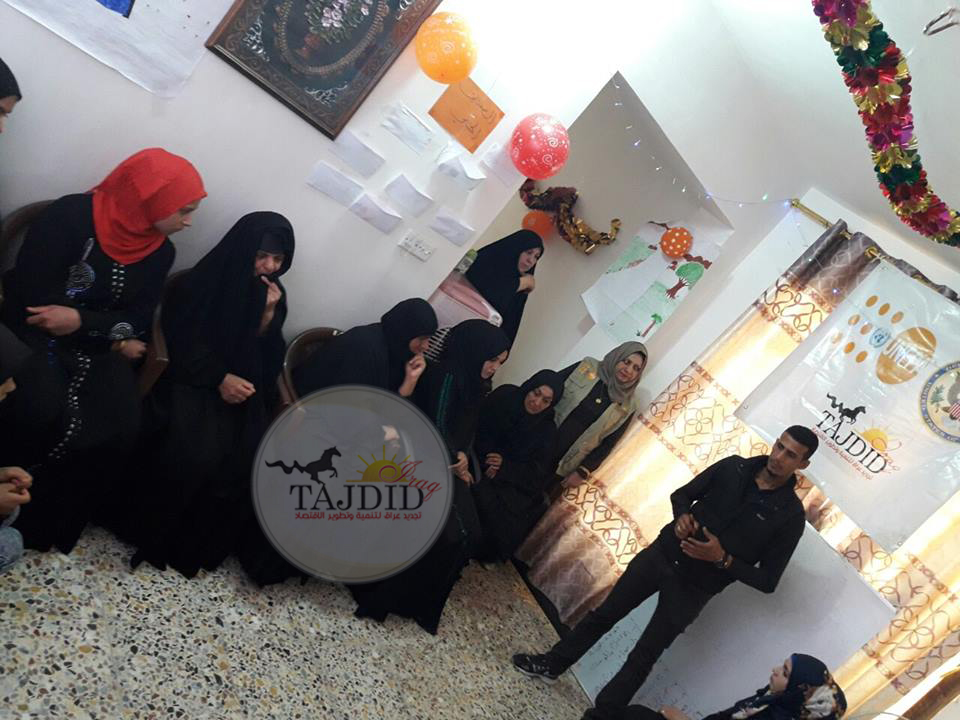 اقامت مؤسسة تجديد عراق بالشراكة مع صندوق الأمم المتحدة UNFPA جلسة تثقيفية حول محاور مختلفة اهمها تقبل الاخر بكل أنواعه وتقبل الاختلاف على اساس الدين والجنس والعرق وغيرها في مركز ” مركز ابتسامة ” الواقع في محافظة بغداد وشاركت في الورشة عدد من النساء النازحات وقاموا بعمل تدريب يساعدهم على الاسترخاء والضحك والاندماج مع بعض البعض وتقبلهم لكل اختلاف وشاركوا بالآراء والقصص وما صادفهم من تفاصيل تخص هذا الموضوع في حياتهم اليومية.